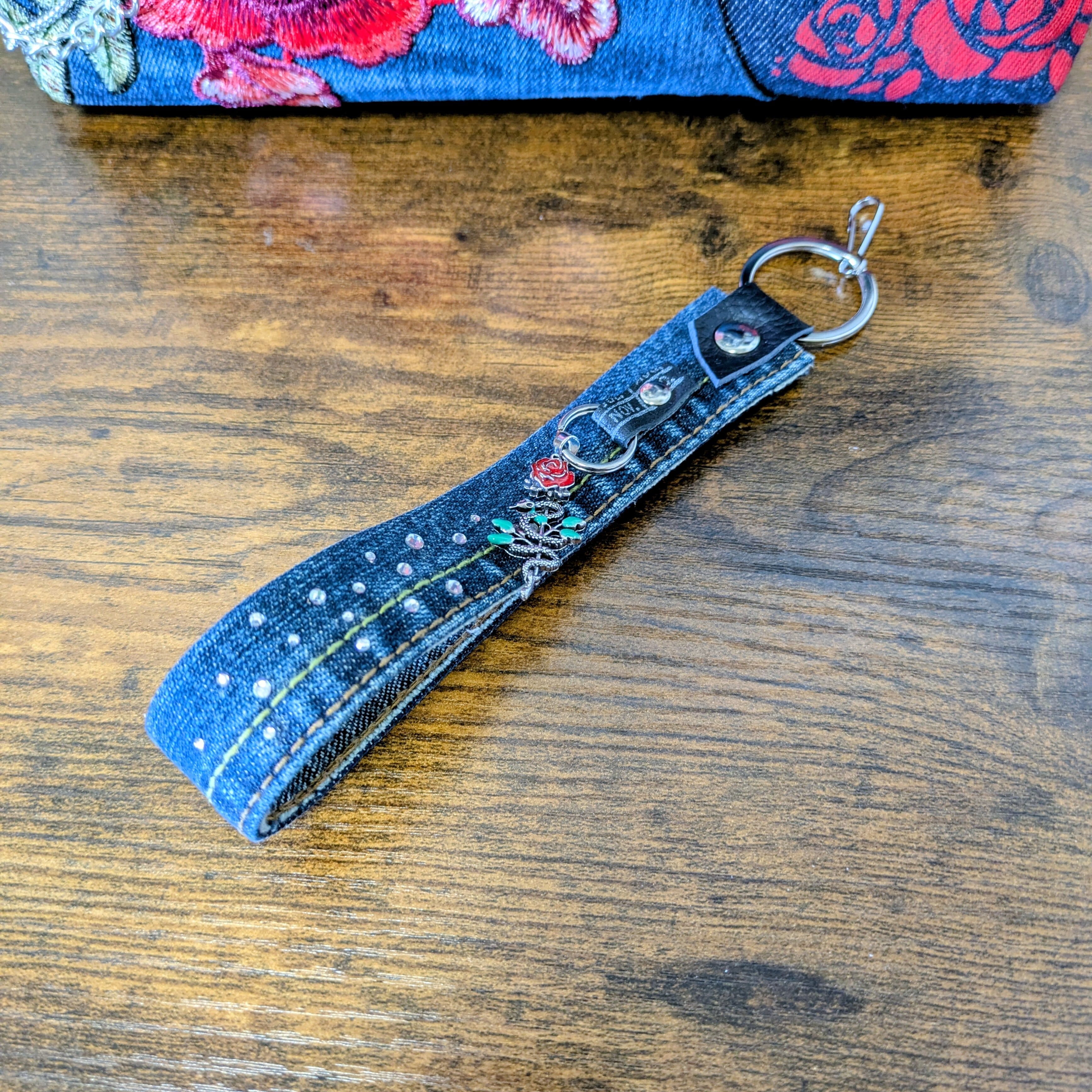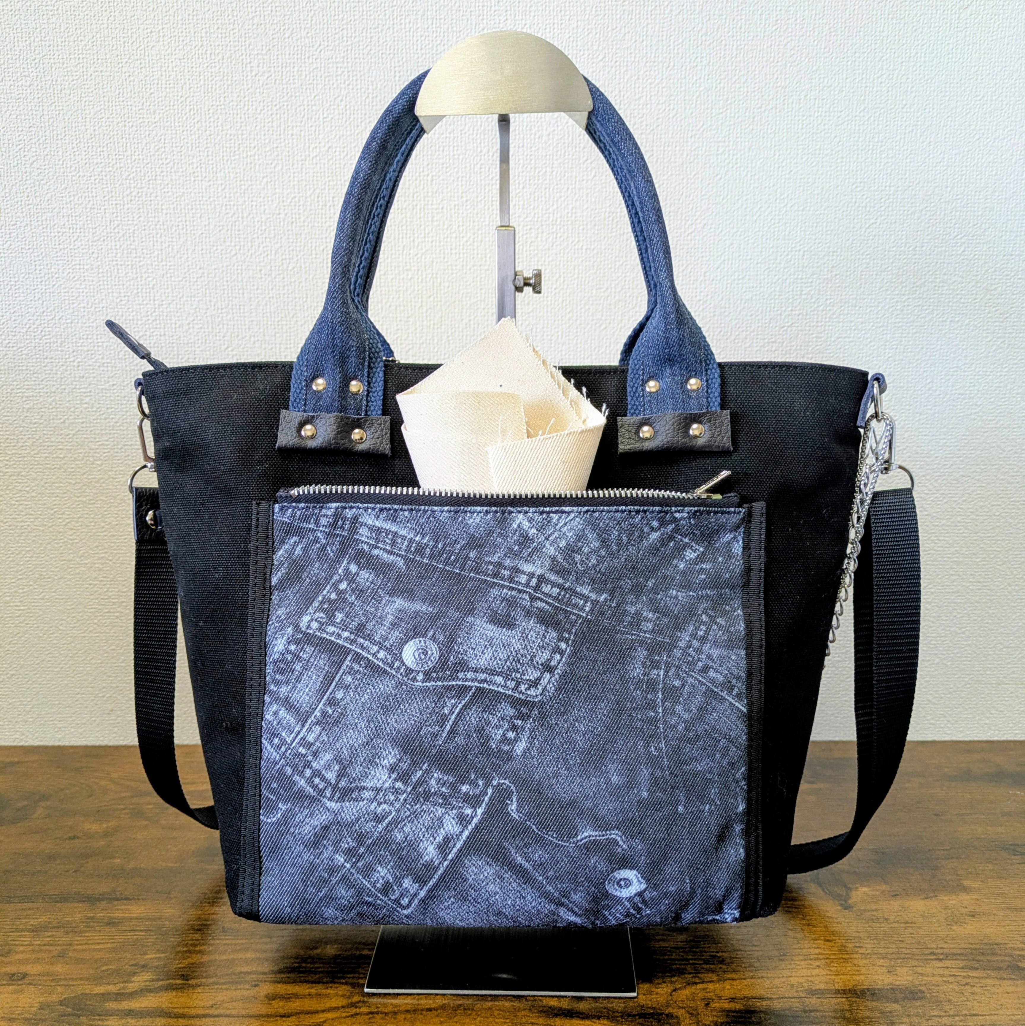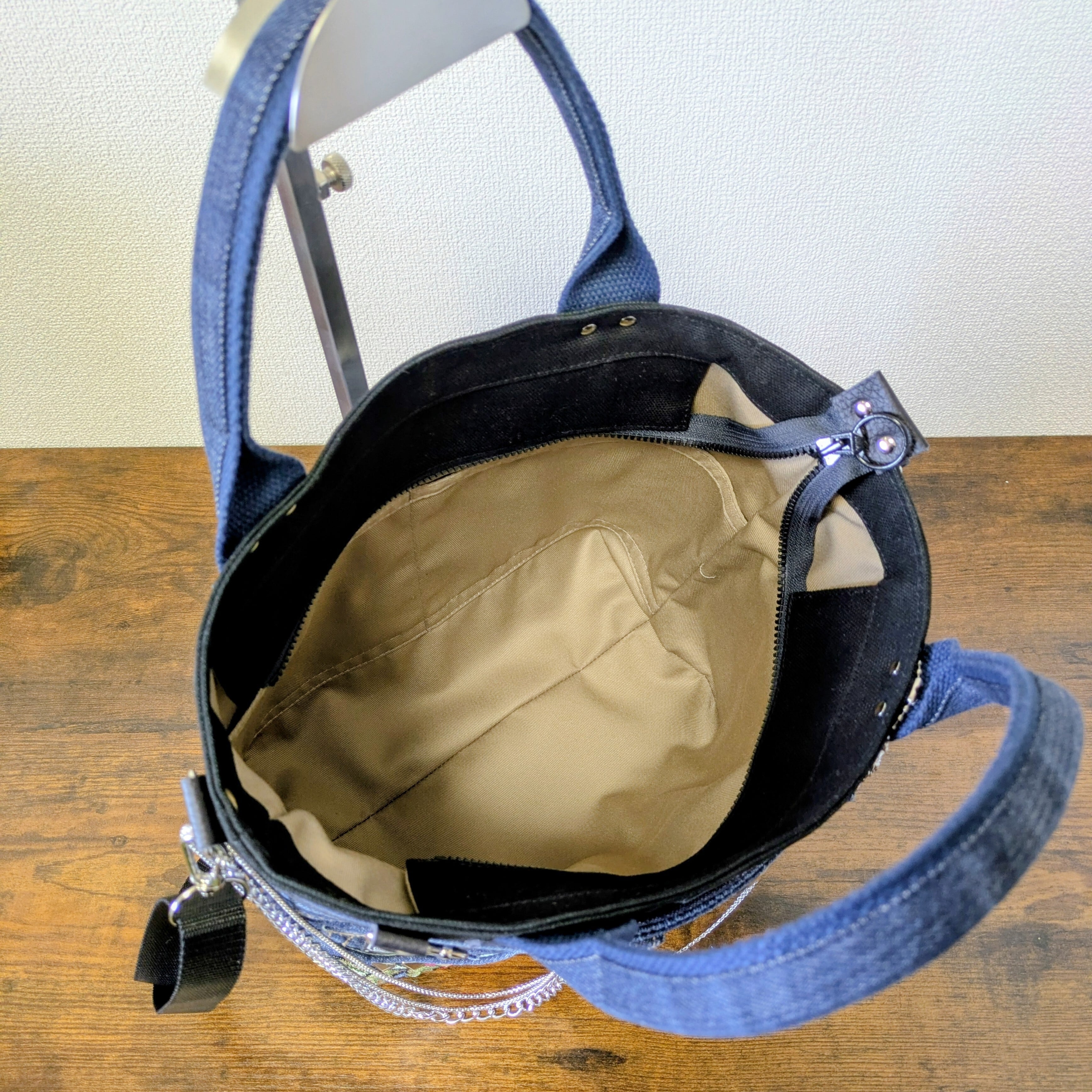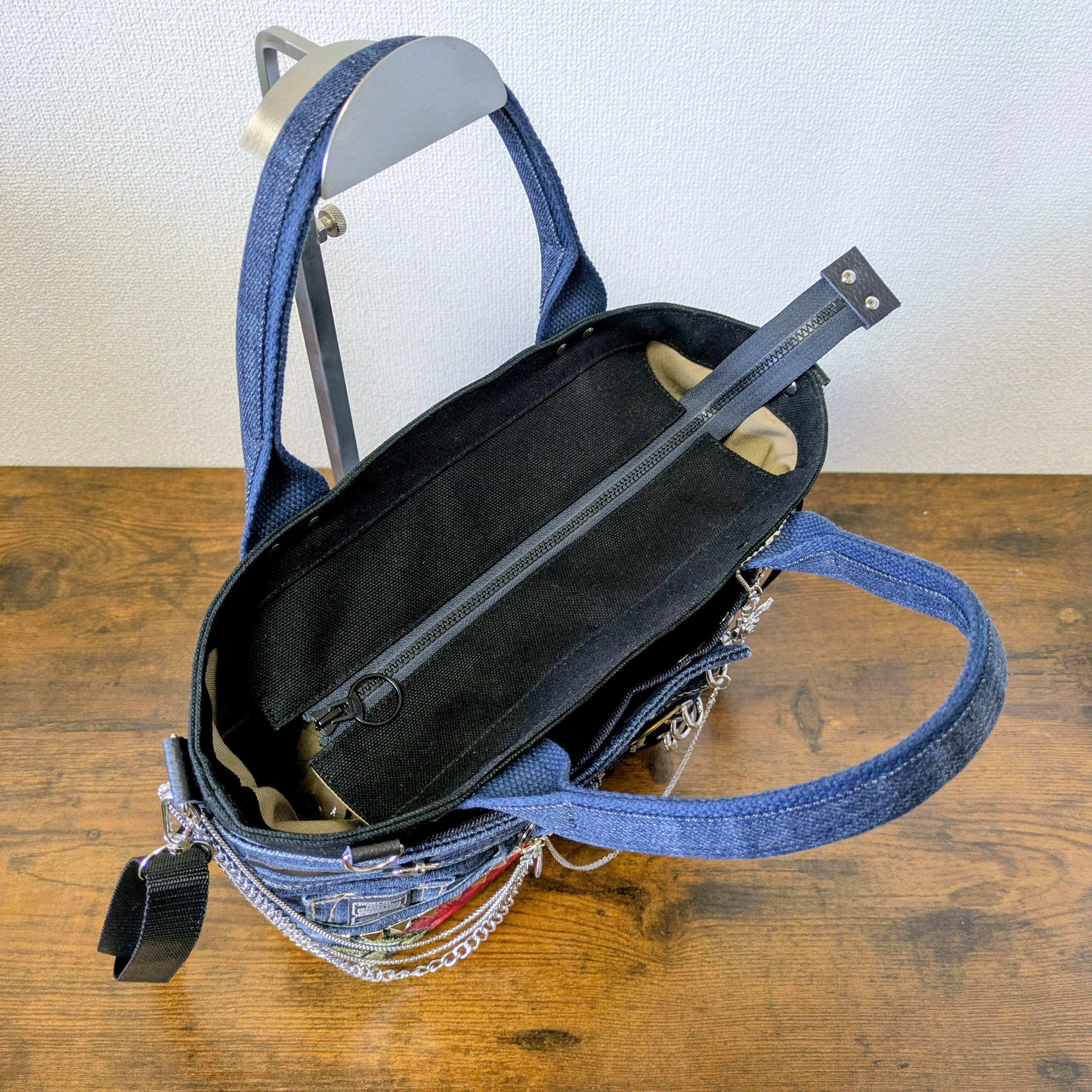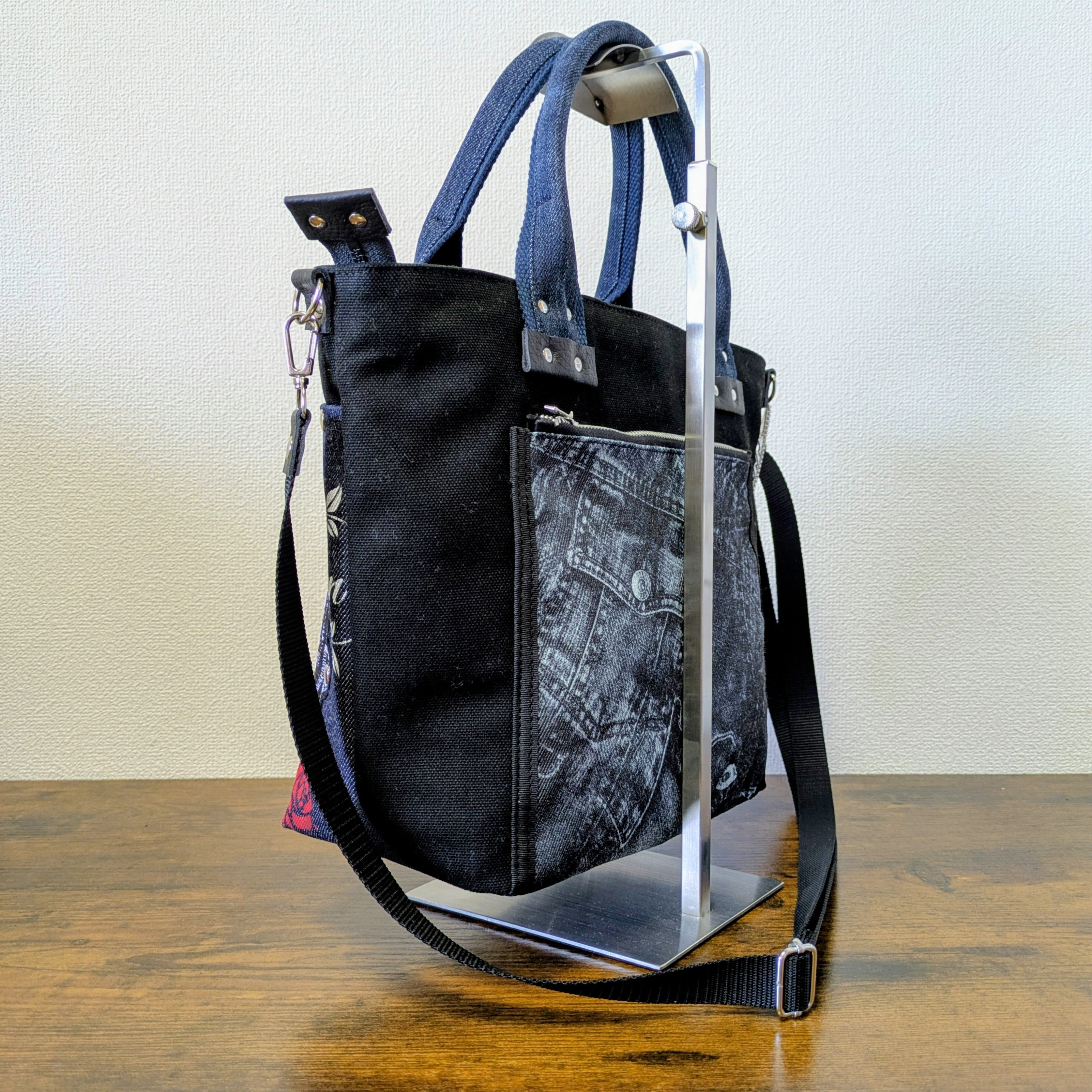一点物 デニムリメイクバッグ 薔薇刺繍 スカル スタッズ 2way