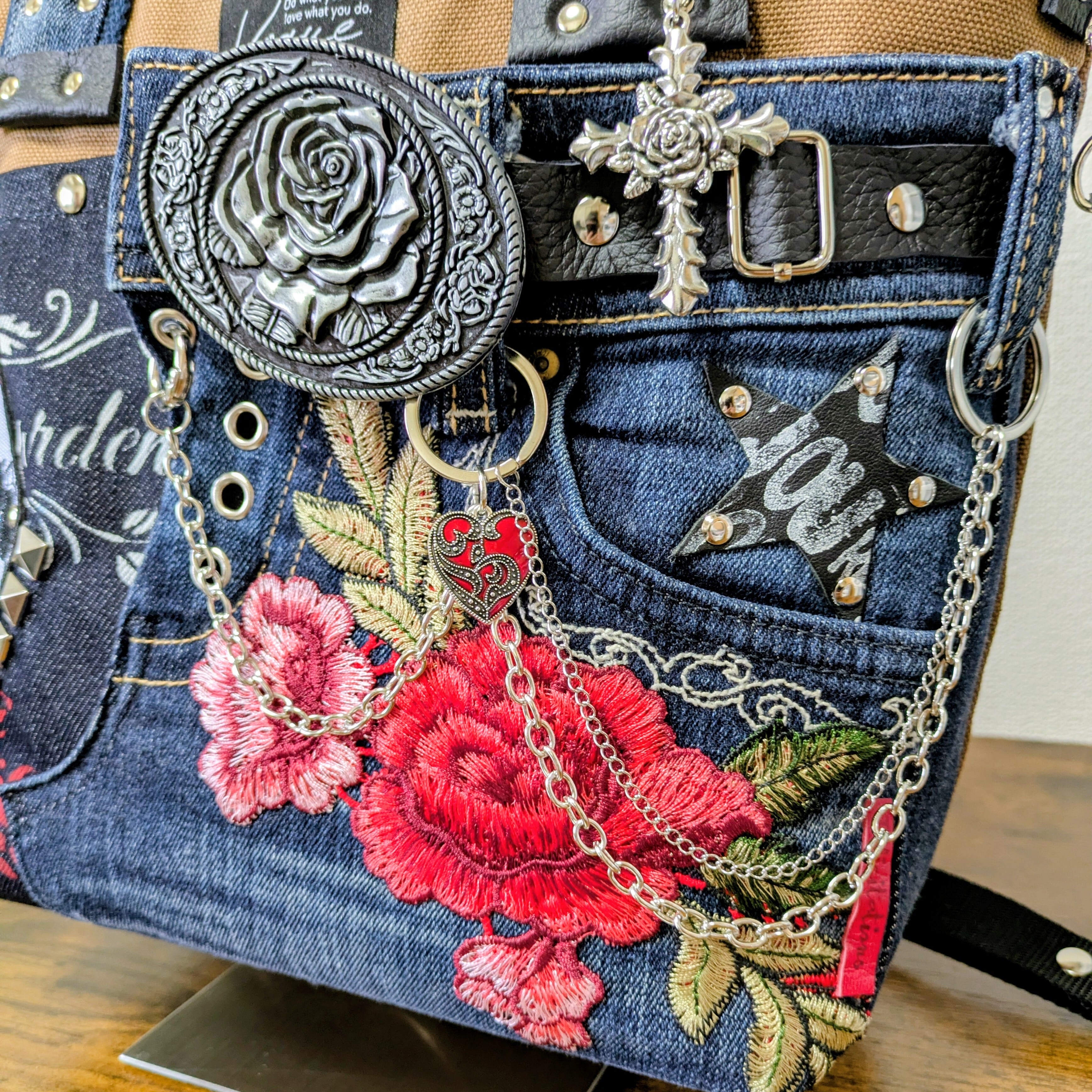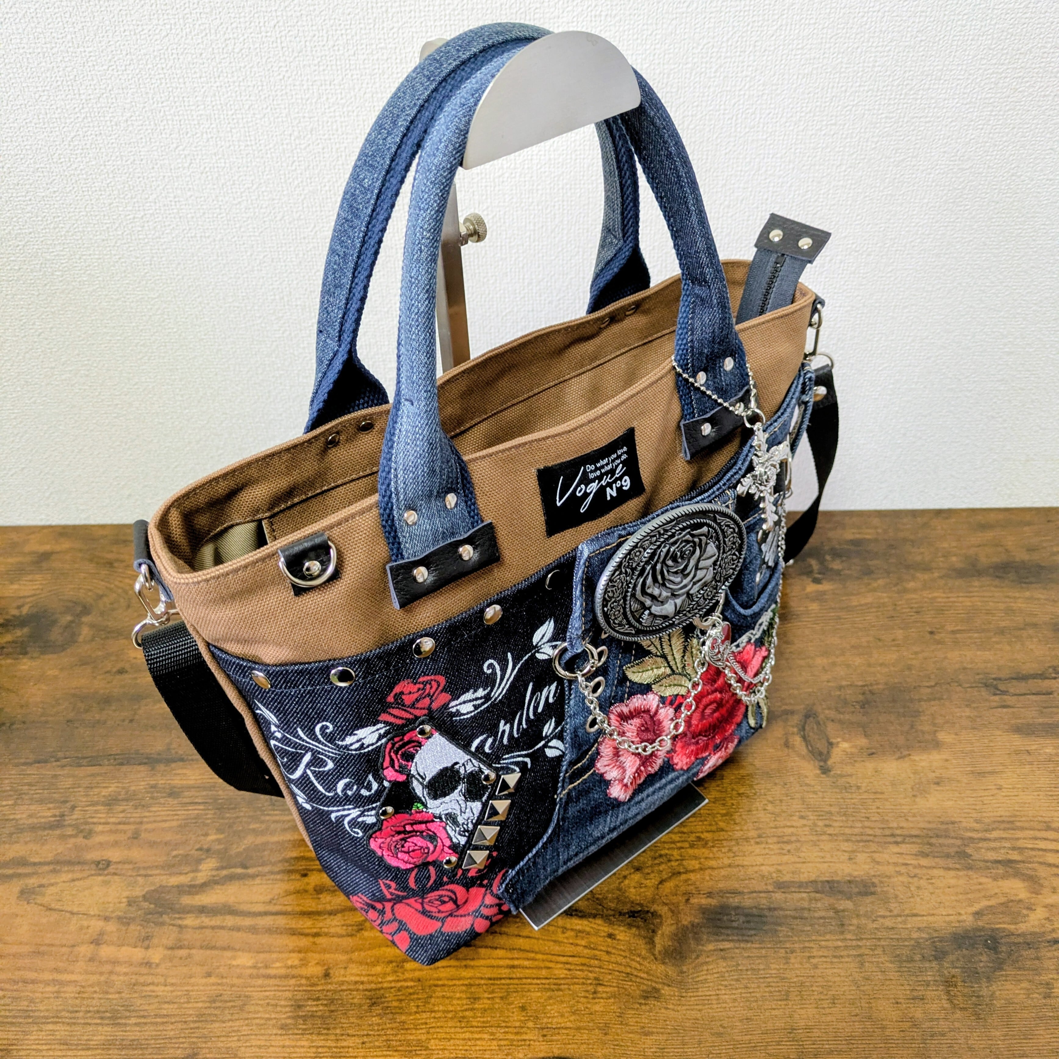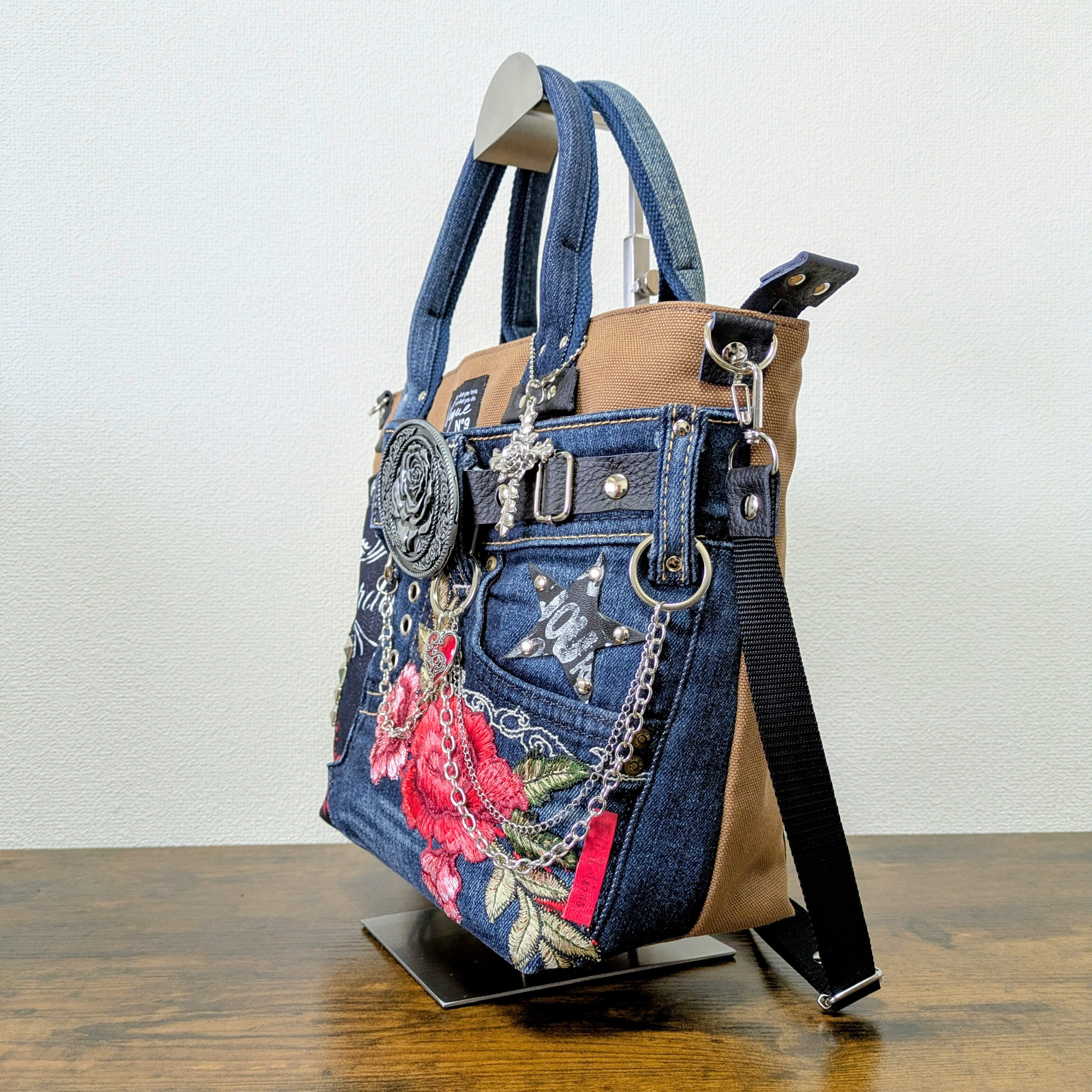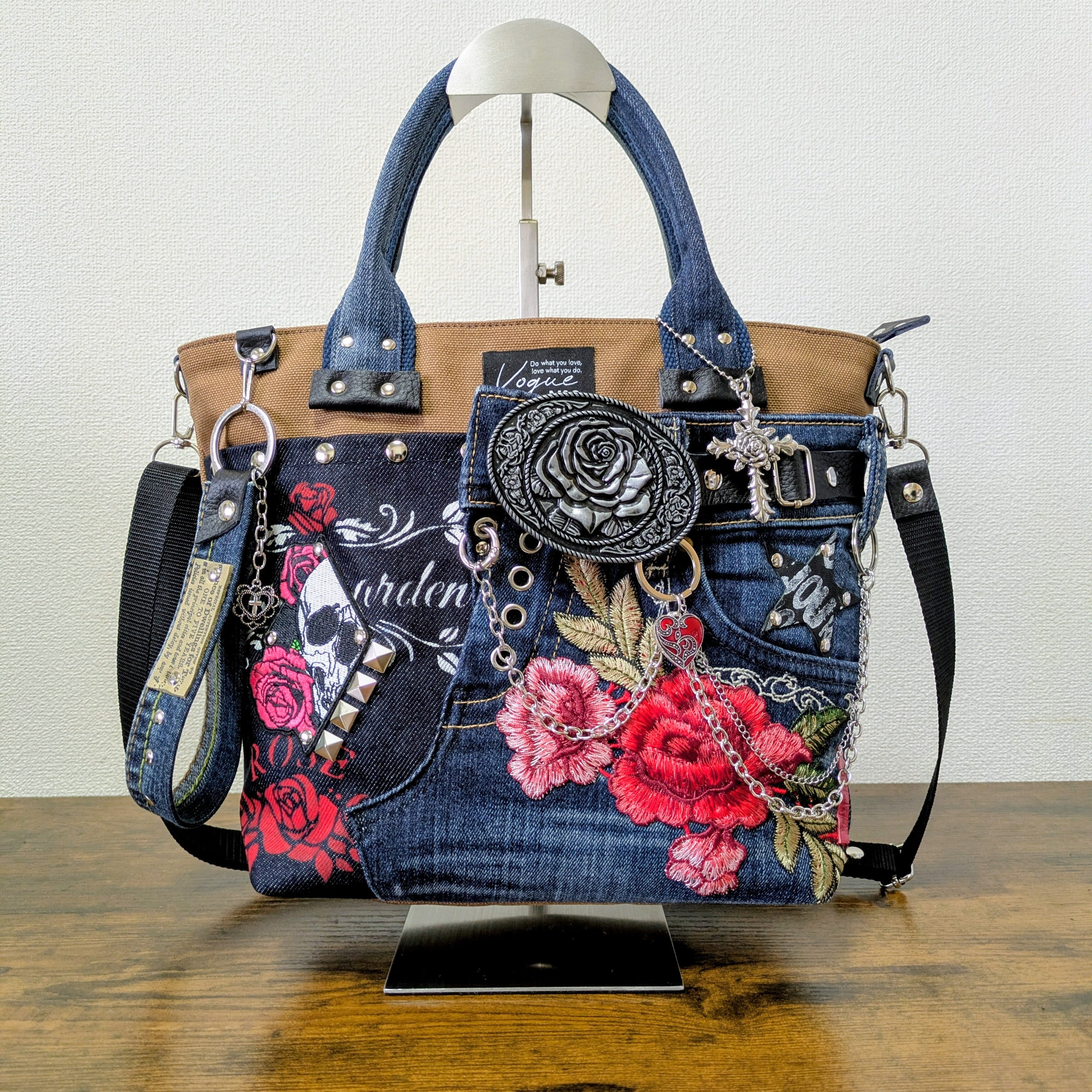 一点物 デニムリメイク 2wayバッグ 薔薇バックル スカル ゴシック